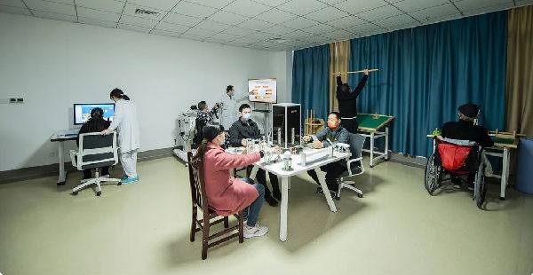 康复治疗区面积约3000余平方米。拥有红外热成像、肌电图、电子软管喉镜、认知言语评定训练系统等先进康复诊疗设备;独立安装悬吊SET训练系统、OT训练多功能治疗台、手工作业训练设备、智能下肢康复机器人、智能上肢康复机器人、智能磨砂平台、四肢联动训练器、天轨减重训练设备、肌骨超声、椎间孔镜;超短波治疗仪、微波治疗仪、生物反馈治疗仪、空气压力波治疗仪、体外冲击波治疗仪、全自动蜡疗机、红外偏振光治疗仪、经颅磁治疗仪、子午流注低频治疗仪、氦氖激光治疗仪等现代高中档康复设备100余种,精准治疗,解除患者病痛。
