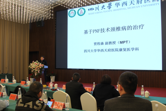 四川省康复治疗师协会会长、四川大学华西医院康复医学中心刘沙鑫教授作了《运动想象疗法在康复医学中的应用》、四川大学华西天府医院康复医学科主任贾程森教授作了《基于PNF技术的颈椎病治疗》、华西康复医学中心微创治疗中心肌骨超声负责人刘岩教授作了《超声引导下的介入治疗》的专题讲座。