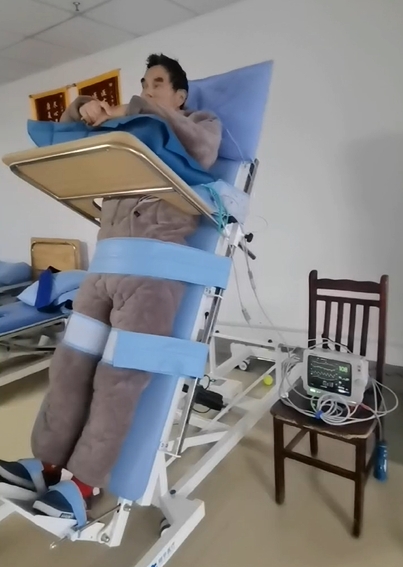 患者赵先生,2022年11月14日发生大面积脑梗死(右侧大脑半球、心源性栓塞型),并继发右侧基底节脑出血,经积极抢救治疗后,病情相对稳定,但遗留左侧肢体偏瘫,卧床不起,不能耐受脱氧、运动训练,随后就诊于广元市中医院中医经典科。
