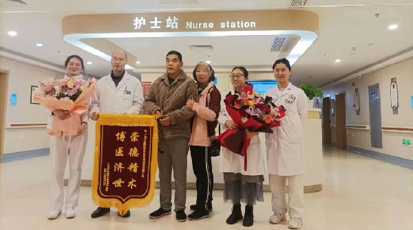 4月2日赵先生出院时,肢体功能恢复正常,日常生活能自理,赵先生及家属都说:“脑中风后能恢复到这样是之前没有想到的”。为了表达感谢和敬意,在出院当天,赵先生及家人激动的为中医经典科全体医护人员送来了锦旗和鲜花。