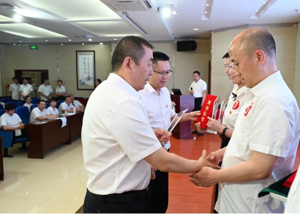 党委书记岳先远,党委副书记、院长周骥为获奖团队颁奖。