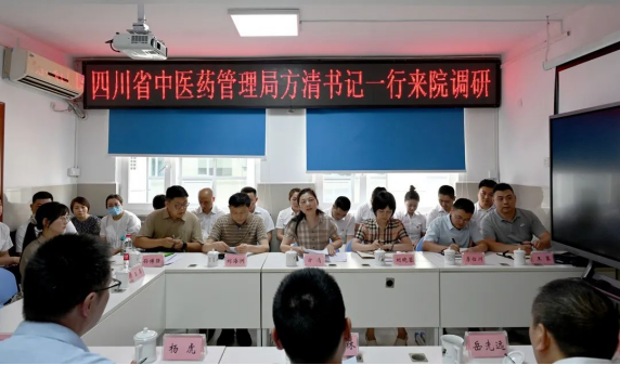 6月13日,省中医药管理局机关党委书记方清到广元市中医院调研。市卫健委机关党委书记郑光林、党组成员、副主任杨虎陪同调研。市中医院党委书记岳先远汇报有关工作。