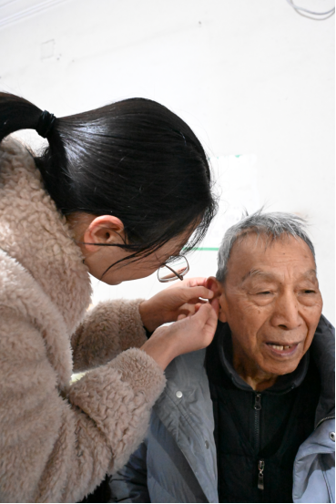 为改善张爷爷的失眠症状,心血管内科护士长陈莉为他进行了“耳穴埋豆”中医特色治疗。