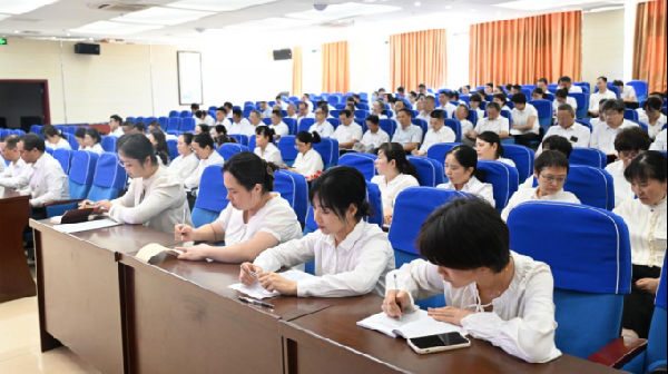 9月19日,广元市中医院召开学习贯彻习近平新时代中国特色社会主义思想主题教育工作会议,传达学习习近平总书记关于主题教育系列重要讲话精神和市委学习贯彻习近平新时代中国特色社会主义思想主题教育工作部署会议精神,安排部署主题教育相关工作。医院领导班子成员,各党总支书记、支部书记、支部委员,各部门科室中层干部参加会议。