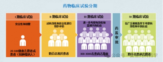 临床试验设有I期、II期III期和IV期,每个时期的侧重点和所需要观察的人群数量都有所不同。简言之,本阶段是为了充分论证药物在人体应用时的有效性和安全性