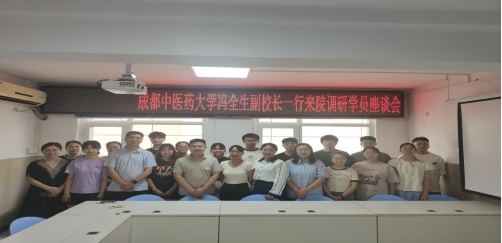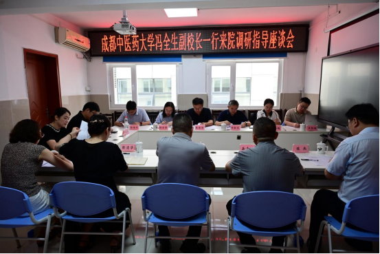 7月23日,成都中医药大学党委常委、副校长冯全生、校医院管理副处长张传涛、科技处综合科科长王冬梅、教务处实验教学中心副主任杨亦奇等一行6人莅临我院,调研指导我院教学、科研、附属医院建设等工作。院党委书记岳先远、党委副书记、院长周骥、副院长陈兵及相关科室负责人陪同调研。