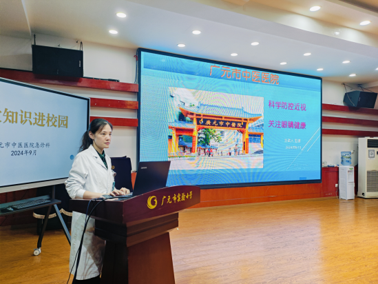 眼耳鼻喉科主治医师王璟针对我国青少年近视眼患病率高的困境,以《科学防控近视,关注眼睛健康》为题,开展专题讲座,分析了近视危害,介绍了近视矫正方法,强调了通过正确用眼、体育锻炼、养成良好生活饮食习惯,进行有效近视防控。