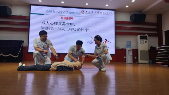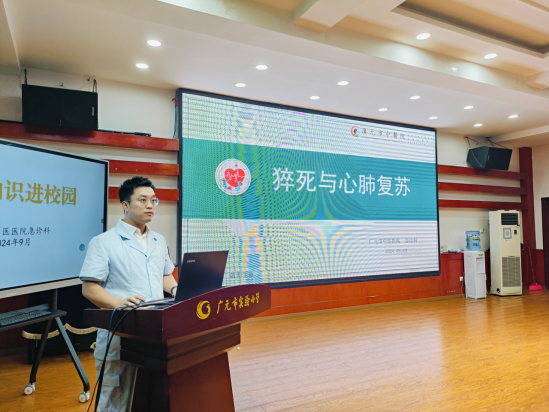 急诊科护师卢东晨做了《猝死与心肺复苏》讲座,普及了心肺复苏知识;现场示教了胸外按压、人工呼吸心肺复苏方法;学生现场体验了胸外按压心肺复苏法。