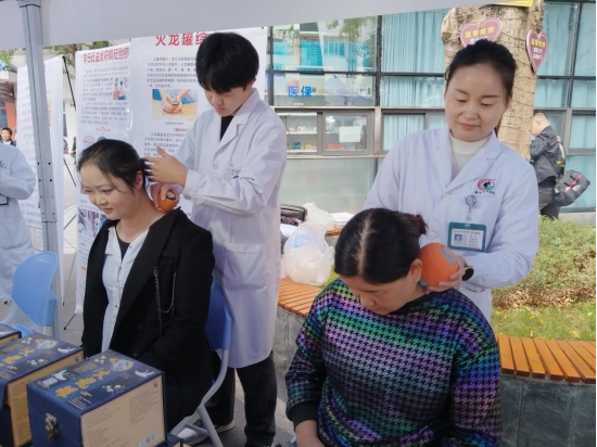 此次义诊活动覆盖了健康咨询、疾病筛查,设立有干眼症、视疲劳、近视防控熏蒸治疗体验区,中医药养生产品展示区、中药茶饮品鉴区、中医适宜技术体验区,旨在通过面对面的服务,让患者能享受到专业、便捷、具有中医特色的医疗服务。