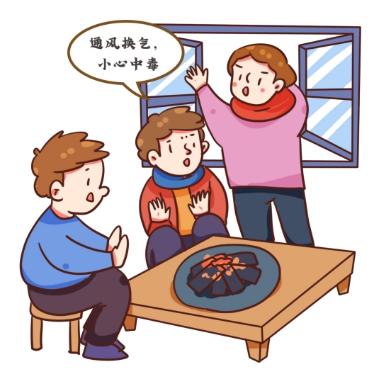 1.室内使用煤炉、炭火等取暖设备时,煤炭要烧尽,不要闷盖;要经常门窗通风换气,保持室内空气新鲜。