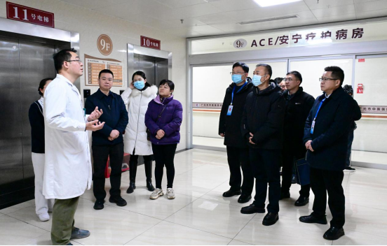 1月17日,省卫生健康委老龄健康处处长罗开平一行莅临广元市中医院开展老年健康及安宁疗护工作调研,市卫生健康委党组成员、副主任李小军,市中医院党委书记周骥,党委副书记、院长陈兵等陪同调研。