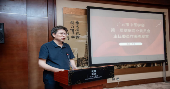 广元市中医医院党委副书记、院长陈兵作重要讲话,他指出广元市中医学会脑病专业委员会的成立,为全市脑病领域医务人员搭建了一个高水平的学术交流平台。希望脑病专业委员会凝聚全市乃至省内外脑病防治力量,开展学术研讨、技术培训、病例分享、继续教育等活动,促进中西医融合、医教研协同,推动脑病防治人才的成长与专业水平的提升。