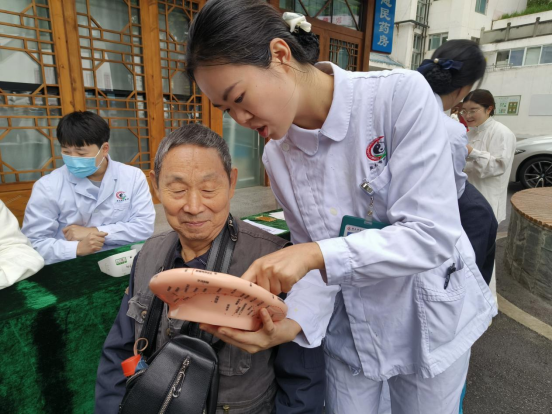 除养生功法展示外,活动还设有多个中医特色服务体验区。在血压测量区,医护人员细致为市民测量血压,并结合测量结果提供个性化健康指导,帮助大家增强慢性病早期防控意识。