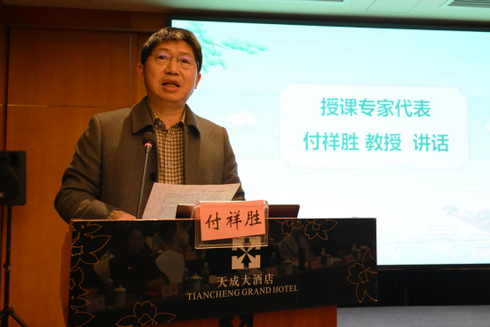 付祥胜教授代表授课专家讲话,他表示,讲者们将倾囊相授,期待与广元同仁深入交流,碰撞思想火花,开启更深层次合作。