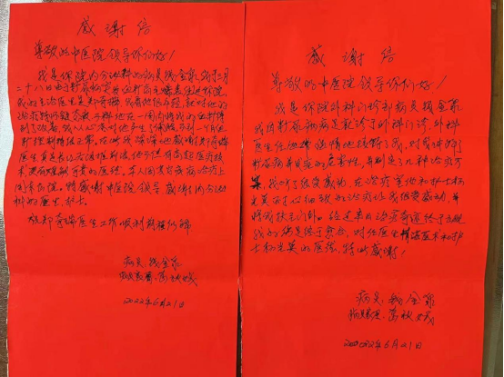 6月21日,广元市中医院普通外科和内分泌科分别收到同一患者的感谢信。故事还得从开头说起......