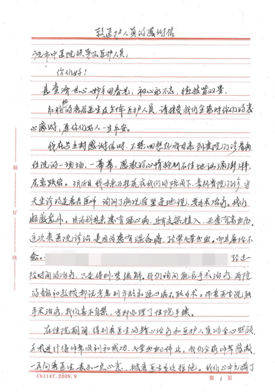 这份充满温情的感谢信,不仅是对医护人员工作的认可,更是对医护人员的信任和工作上的支持。在今后的工作中,广元市中医院肛肠全体医务工作者将继续用专业与细致、微笑与真诚、耐心地服务好每一位患者!