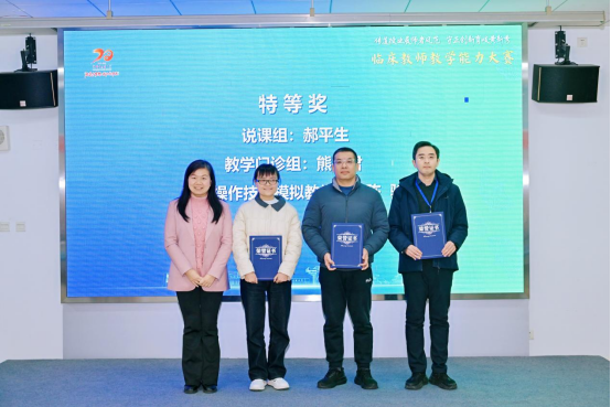 在教学门诊组别决赛中,熊梓君以清晰的逻辑、娴熟的沟通技巧和启发式教学方法,生动演绎了门诊带教的全过程,充分体现了“以学生为中心”的教学理念,赢得了评委的一致高度评价,获该组别最高奖项——特等奖。