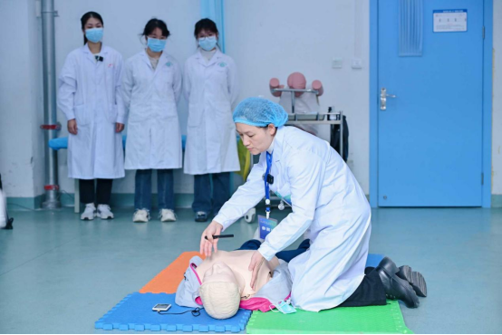 (杨艳芳在决赛现场进行心肺复苏示教)