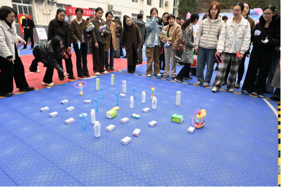 【圈住幸福·套中惊喜】 :备受期待的实物奖励环节!地上摆满了牙膏、抽纸、香皂等实用精美的小礼品。参与者站在1.5米外,手持圈圈瞄准心仪的物品投掷。每人有三次机会,套中即得,先到先得,让快乐与幸运一同带回家。