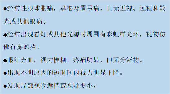 一旦出现以下情况,应警惕青光眼发作,要尽快到医院接受检查。