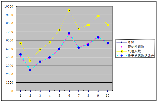 从查处问题类型看,违规发放津补贴或福利1353起、违规收送礼品礼金1151起、违规公款吃喝798起、违规配备使用公务用车767起、大办婚丧喜庆559起、公款国内旅游286起、楼堂馆所违规问题118起、公款出国境旅游9起、其他问题(包括提供或接受超标准接待、接受或用公款参与高消费娱乐健身活动、违规出入私人会所、领导干部住房违规、违规接受管理服务对象宴请等问题)544起。从查处干部级别来看,被处理的人员中地厅级干部77名、县处级干部701名。