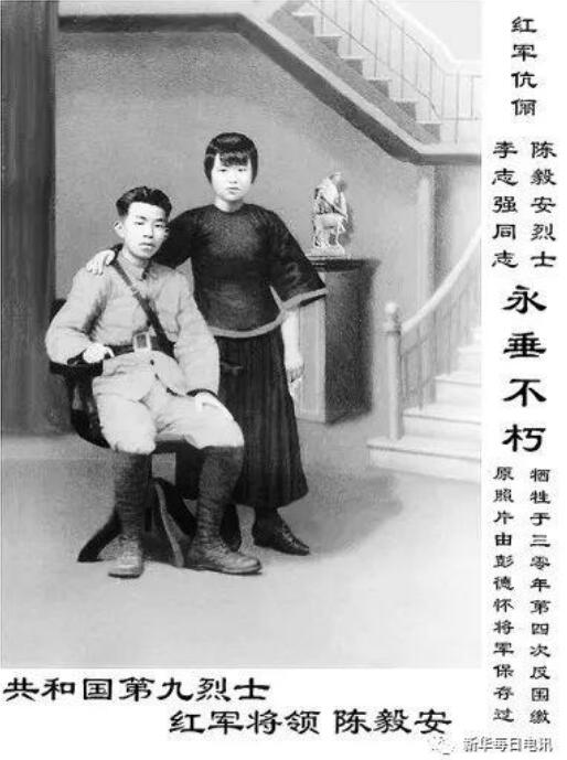 肖像中的陈毅安,俊朗清秀,戴着眼镜,像个秀才。他是湖南湘阴人,黄埔四期生,秋收起义后上了井冈山,骁勇善战。李志强在长沙城里的湖南省立第一女子师范就读,两人属于一见钟情。