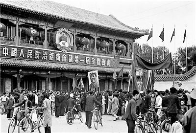 1949年9月21日至30日,中国人民政治协商会议第一届全体会议隆重举行。图为中南海新华门前庆祝会议召开的群众队伍。