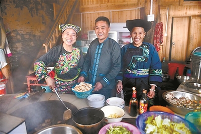湖南湘西十八洞村,过去因为贫穷而出名。2013年11月,习近平总书记在这里首次提出“精准扶贫”。如今的十八洞村已经脱贫,并且入选首批全国乡村旅游重点村名单。图为该村首家农家乐“巧媳妇”的厨房里,主人在忙着为游客炒菜。(资料图片)