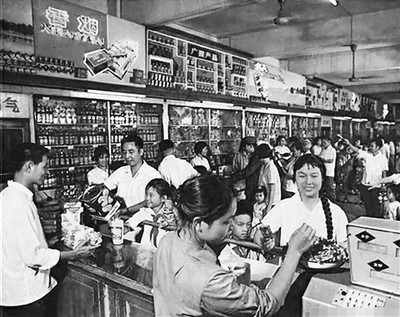 全国统一的供销合作社系统于1954年建立,形成了一个上下连接、纵横交错的全国性流通网络。这是上世纪60年代,人们在供销社里选购商品。(资料图片)