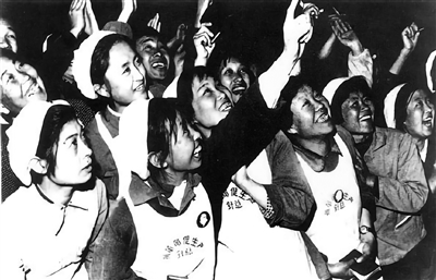 1970年4月25日20时29分,东方红一号经过北京上空,天安门广场人山人海。这是喜看卫星飞过头顶的人群。(资料图片)