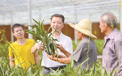 时任福建省政和县县委书记廖俊波在县东涧花卉基地了解村民和返乡企业主种植花卉的情况。新华社记者魏培全 摄
