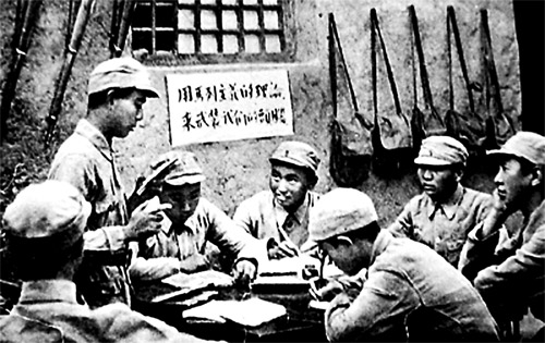 延安时期,八路军指战员认真学习马列主义理论。(资料图片)