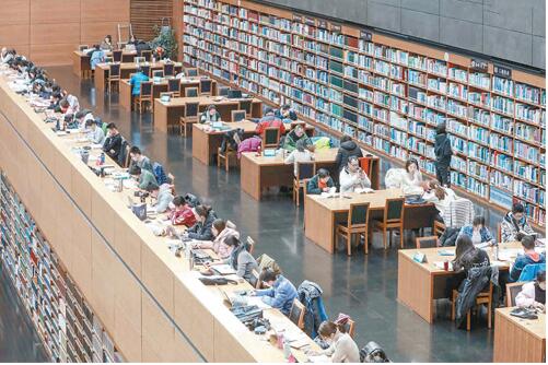 2019年春节期间,读者在中国国家图书馆阅读大厅内看书学习。新华社发(陈晓根摄)