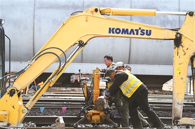 图为牡(丹江)佳(木斯)客专米厂路改移工程拨移线路进行施工收尾。牡佳客专是国家“十三五”规划的重点铁路工程之一。2020年,是“十三五”规划的收官之年。新华社记者 王建威 摄