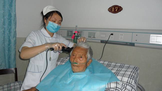 曾经有这样两位患者,一个是靠呼吸机辅助呼吸了三年多的黄女士,由于气管切开,不能用语言表达,开始还可以歪歪斜斜的写几个字,后来就只能用眼神来表达自己的意图,这就需要敏锐的观察力和强烈的责任心,从细微变化中寻找蛛丝马迹,及时为她解决,以减轻她的痛苦,在她的精心护理下,那位病人没有发生一处压疮,每次她到病房时,黄女士都会为她竖起大拇指!另一个是因股骨颈骨折伴肺部感染的高龄患者张大爷,这位患者是一个典型脾气暴躁者,不怎么招家人喜欢,于是就请看护照顾。可能是缺少家人的温暖,老人家经常大吼大叫,破口大骂,看护换了一个又一个,可是她并没有因此而退缩,而是迎难而上,找出突破口,用心去交流,去温暖他。每天主动去关心他,为他翻身拍背,洗澡,洗头、修剪指甲、功能锻炼,由于长期卧床有一次他出现了便秘,用了缓泄剂效果不太好,心功能不好又不能灌肠。于是,她就毫不犹豫地用手为他掏出了大便,这次老人家哭了,拉着她的手说“孩子,谢谢你,你就是我的亲孙女啊!”。