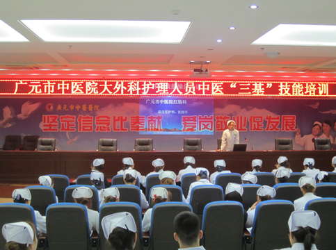 为深入开展党的群众路线教育实践活动,广元市中医院确定了“素质教育培训”、“服务百姓健康”等“五大专项活动”。近日,大外科系统率先对45名新进年轻护理人员进行了中医药“三基”技能培训,主要包括刮痧、拔火罐、涂药、中药熏洗4项中医技能培训,进一步强化了理论和临床实践结合,提升了年轻护理人员为患者服务的本领。