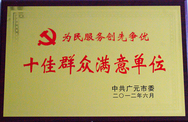 广元市中医院喜获我市“为民服务创先争优十佳群众满意单位”殊荣