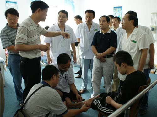 广元市中医院系省卫生厅批准成立的四川省地震伤员康复治疗分中心。专家组一行详细听取了该院地震伤员的康复治疗情况,并对伤员进行了详细查体、康复评估和技术指导。要求应充分发挥中医药手段对地震伤员康复的优势,认真开展工作,降低伤残率,促进地震伤员早日回归社会。专家组对正在分中心援助的浙江省康复医疗队,以及广元市中医院所做的工作给予了充分肯定和高度评价。专家组还认真听取了该院院长贾天贵关于康复工作情况汇报,提出了当前还存在康复设备不足、经费得不到保障、相关政策不配套等困难。专家组表示将尽快向省卫生厅和卫生部反映,争取早日得到落实。