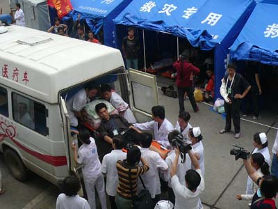 广元市中医院认真执行上级指示精神,严格把握伤员转院指征,先后将112名因地震受伤人员转省外治疗。(组图)