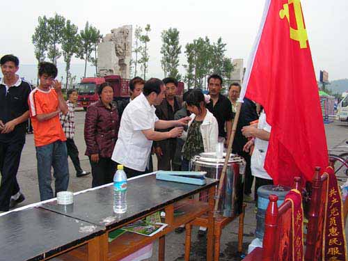 4、坚守岗位,努力干好本职工作,坚持战斗在救灾第一线。我中心地处广元市上西则天北路社区,毗邻重点灾民安置点“川港汽车城”,安置点内居住了万余名受灾群众,其内人口密集,环境条件差,居民心理压力大,加之天气炎热,极易引发传染病等公共卫生事件。中心领导和职工深知社区疾病预防工作的重要性,积极安排消杀、预防等工作。先后多次派人到川港 汽车城发放宣传资料,发放药物,送自煎预防中药汤剂免费发放,并积极组织避灾居民参加健康教育知识讲座,通过学习“实用避震手册”,了解地震避震常识,稳定避灾居民情绪;通过学习“地震引发的常见疾病”,了解地震后引发公共卫生事件的原因和预防措施,敦促居民养成良好的生活卫生习惯。