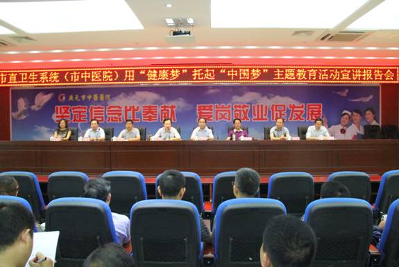 6月6日下午,由市卫生局党组书记何大正、直属机关党委书记张伟带队,市直卫生系统“健康梦”托起“中国梦”主题教育宣讲团走进市中医院,为全院党员干部和职工进行了主题宣讲。