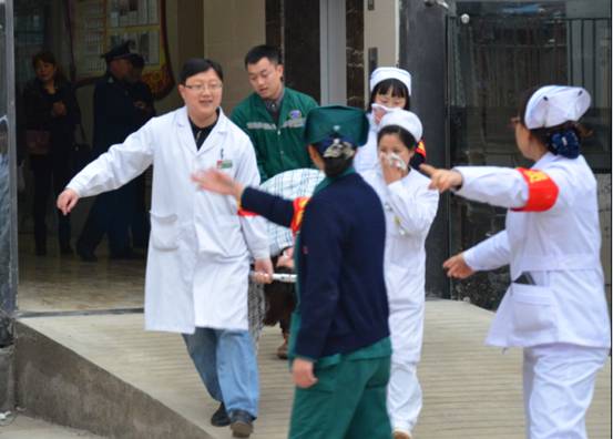 在学习消防知识的同时,我院也将消防知识应用到实践当中,开展了消防知识演练。“17病室失火了”值班护士发现火情立即大声呼叫,并即刻按响就近的警报器,并向消防控制室值班人员报告,护士长闻讯立即组织全体医护人员疏散病员,医务人员、消防值班人员、后勤保障组、救护队各司其职,顺利的完成了消防演练。