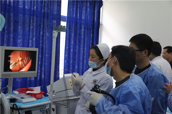 我院消化科是市级重点专科建设单位,科室近年得到快速发展,拥有一批先进的内镜诊疗设备,医护人员多次赴上级医院进修深造,技术娴熟,年开展胃肠镜诊疗10000余例。新技术不断涌现,继成功开展“内镜下碘染色早期肿瘤诊断”、“内镜黏膜下剥离术(ESD)”等新技术之后,内镜经粘膜下隧道肿瘤切除术(STER)的成功开展,标志着我院消化科内镜技术又迈上了一个新台阶。