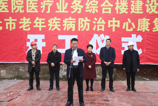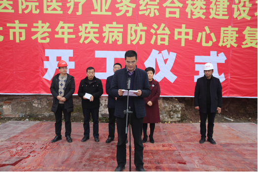 市卫计委党组书记、主任袁明胜对工程开工表示祝贺。市中医院老年康复大楼工程作为我市卫计系统的一项重点工程、民生工程,对加快和促进我市卫生事业、中医事业、老龄事业和康养产业发展,具有十分重大的意义,市卫计委将全力支持工程建设。袁明胜要求院方要精心组织,加快项目推进,并要求各参建单位通力协作,高标准、严要求,努力创一流质量,建一流工程,树一流精品。