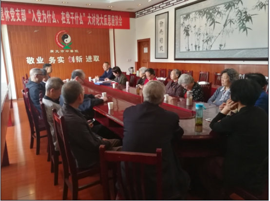 他们已退居二线,他们曾洒下青春和汗水,他们曾为中医院的事业打下坚实的基础,他们仍怀揣一腔热血。广元市中医院退休老党员们相约2018年4月3日在医院门诊五楼中会议室学习党的十九大精神,并开展了“入党为什么,在党干什么”大讨论大反思。院纪委书记母斌、党办主任李先林、人事科科长何云龙参加会议。