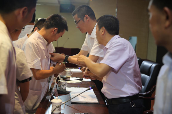 党委书记岳先远对新进职工提出了要求,一是要讲职业道德,遵规守制,工作中树立良好的医德医风。二是要不断追求执业技能,刻苦学习,勤于钻研,以优良的技术服务好患者。三是要遵守执业纪律培养良好的素质和修养,时刻自觉维护全国文明单位的形象。