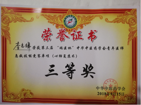 广元市中医院派出的急诊科医生李光辉代表四川队参赛,经过三天激烈角逐,我院李光辉荣获个人单项“三等奖”,为广元和四川争得了荣誉。