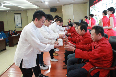 党委书记岳先远宣读了关于确定张雄、吕均、阎斌、赵重熙、严晓明等31名省市级名中医、学科带头人分别与42名弟子结为师徒关系的文件。拜师仪式由工会主席王宏主持。