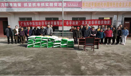 为认真落实中央、省委和市委重大决策部署,全面决战决胜脱贫攻坚,确保广元市苍溪县高质量完成2019年度脱贫摘帽工作。3月14日,医院40余名帮扶干部在分管领导王主席和母书记带领下,到我院帮扶的苍溪县高坡镇珍子村和茯苓村开展“春季攻势”及“三同三进”活动。同时向两个村46户贫困群众发放医院捐助的春耕助农物资,每户发放复合肥2袋,共计价值1万余元。