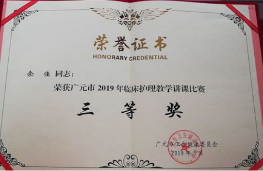 六、“临床护理教学讲课比赛”三等奖:大内科护士长余佳。